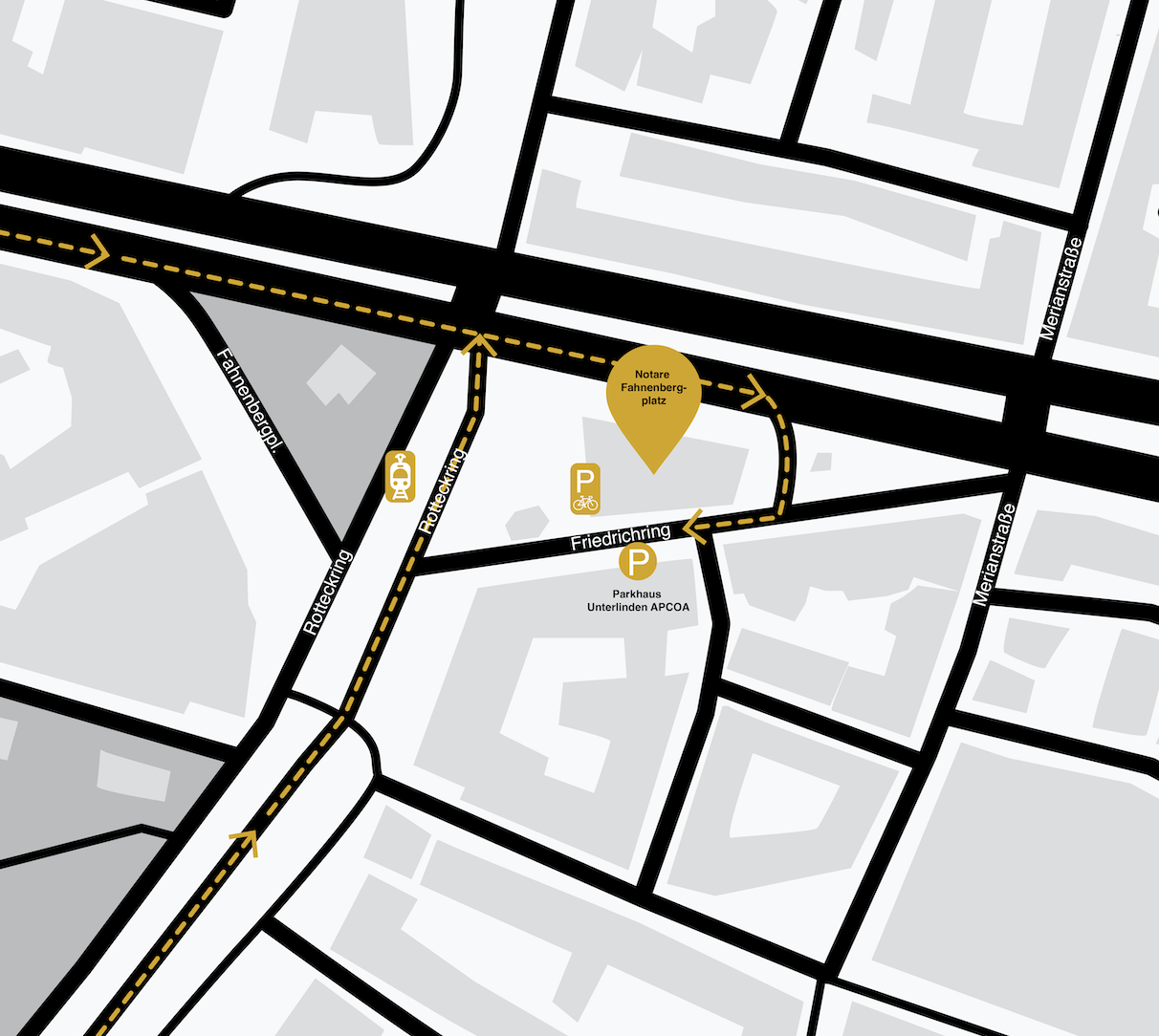 Sie können mit Ihrem PKW im Parkhaus Unterlinden APCOA mit direktem Zugang zu den Kanzleiräumen parken. Im hinteren Bereich des Parkhauses finden Sie einen direkten Zugang zu unserer Kanzlei, den Sie durch die Türe mit der Aufschrift “Zugang Büros” erreichen. Bitte klingeln Sie, damit wir Ihnen die Türe öffnen können. Mit den Aufzügen können Sie direkt in den 4. Stock fahren.